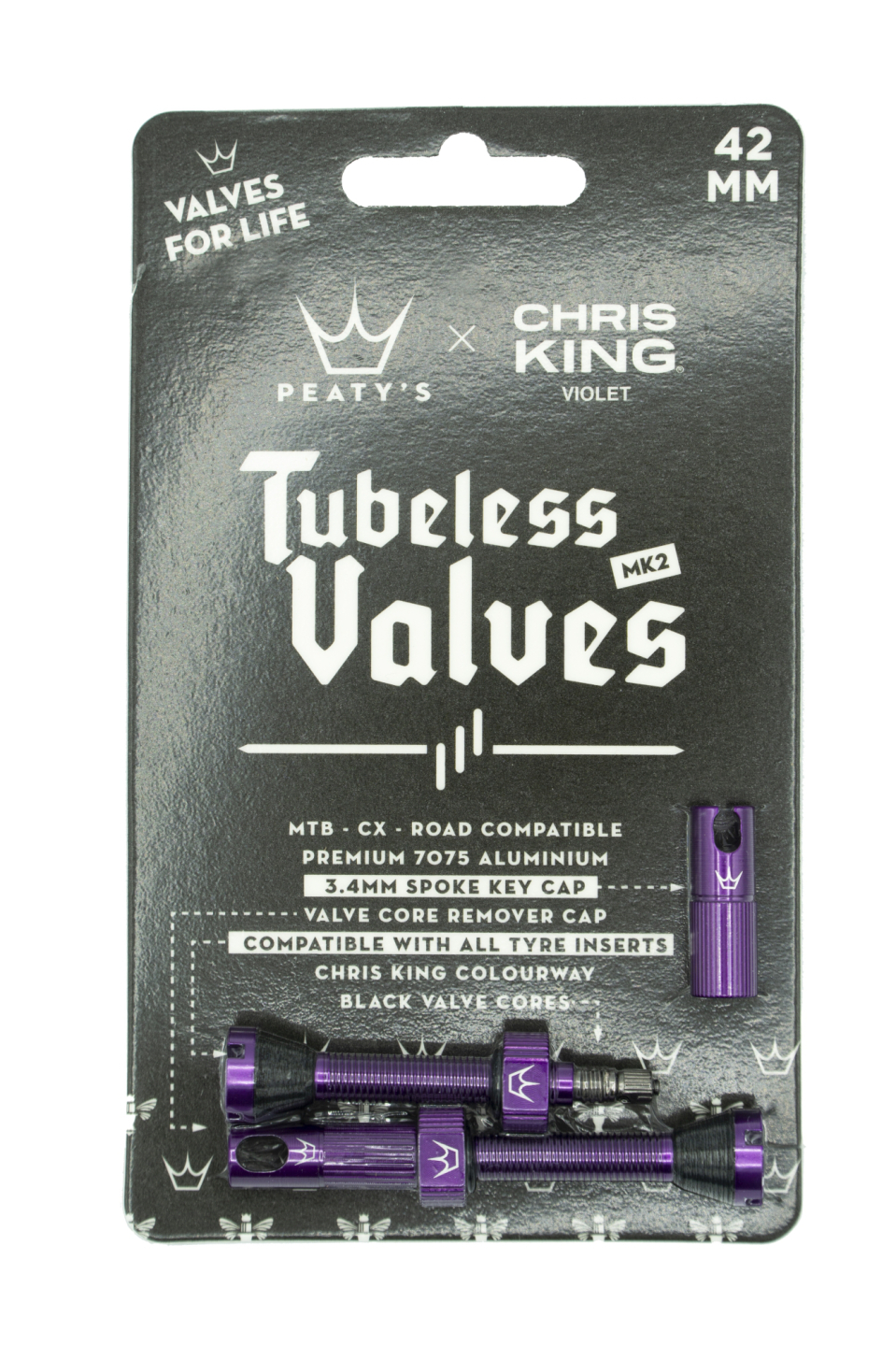 A dizájnnal, a fenntarthatósággal és a minőséggel egészen a lényegig a szelepszíneinkig csak egyetlen vállalattal működhetünk együtt - Chris King! Egy életre szóló szelepjeinkkel és lenyűgöző színeikkel a kerékpárod évekig igazi élvezetet fog jelenteni. A könnyű, nagy szilárdságú prémium 7075 alumíniumból készült Peaty MK2 tubeless szelepek az MTB-től az országútin keresztül a cyclocrossig kompatibilisek legtöbb tubeless rendszerrel, beleértve a karbon, enduro és DH felniket is. Az egyedülálló x-cut talpazatunkat úgy terveztük, hogy minden külső betéttel működjön. A szelep aljába vágott csatornák lehetővé teszik a levegő és a tömítőanyag áramlását, amikor a betét neki nyomódik. A legtöbb egyéb, betéttel kompatibilis szeleppel ellentétben szelepjeink „egyenes” kivitelűek, így nem csökken le a tömítőanyag vagy a levegő áramlása, ha a betét nincs a külsőben. A beszerelés nem is lehetne egyszerűbb. Az integrált O-gyűrű megakadályozza, hogy a záró gyűrű megkarcolja az értékes felnit, miközben a nagy, lágy gumitalp légmentesen tömít. Bringások tervezték bringásoknak. szelepjeink alapfelszereltsége a beépített szeleptű eltávolító és küllőkulcs kupak (a standard 3,4 mm-es küllőanyához). Ez egyszerűvé teszi a laza küllők meghúzását és a tömítőanyaggal való feltöltést, akár a műhelyben, akár az ösvényen. Megzúzódott a gumi tömítő kúp vagy elszakadt egy o-gyűrű? Nem probléma, nézd meg szervizszettjeinket, hogy felújíthasd a szelepjeidet, amikor kereket vagy kerékpárt cserélsz. Szerelési útmutató: (1) Távolítsd el a szelepsapkát, az O-gyűrűt és a kontraanyát (2) Helyezd be a szelepet a felni szelepfuratába (3) Told rá az o-gyűrűt a szelepszárra (4) Tekerd tá a kontraanyát a szelepszárra (5) Kézzel húzd meg kontraanyát, addig, amíg kézi erővel megtudod (6) Csavard fel a szelepsapkát