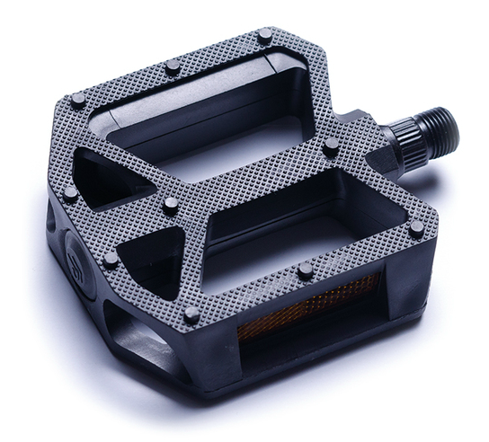 Műanyag BMX pedál • Tengely: 9/16", golyóscsapágyas • Méret: 110×105×27.6 mm • Tömeg: 342 g