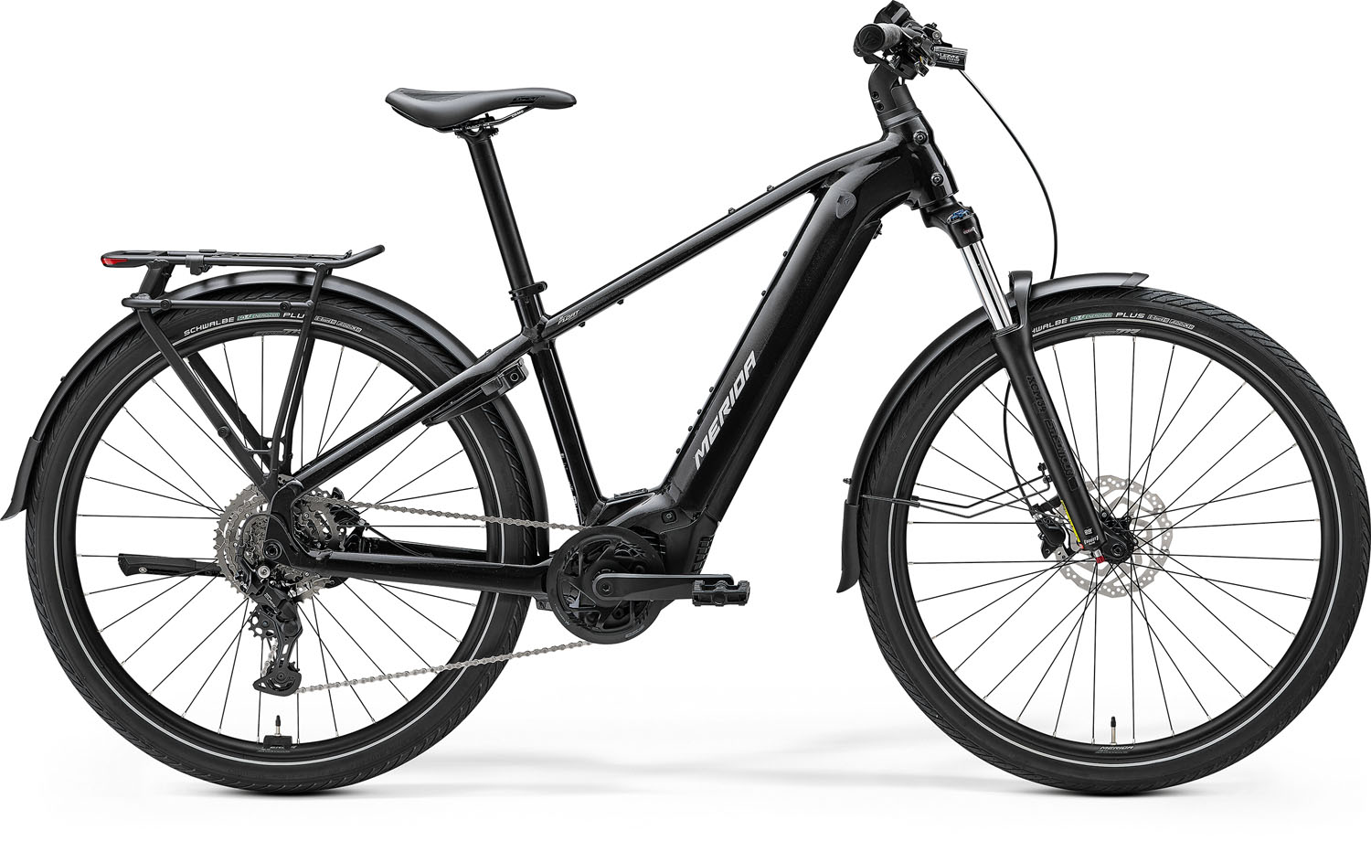 Lezyne Hekto StVZO E350+ Reverse; reverse MERIDA Custom Mount; Spanninga Commuter Glow XE integrated in MERIDA MIK HD carrier