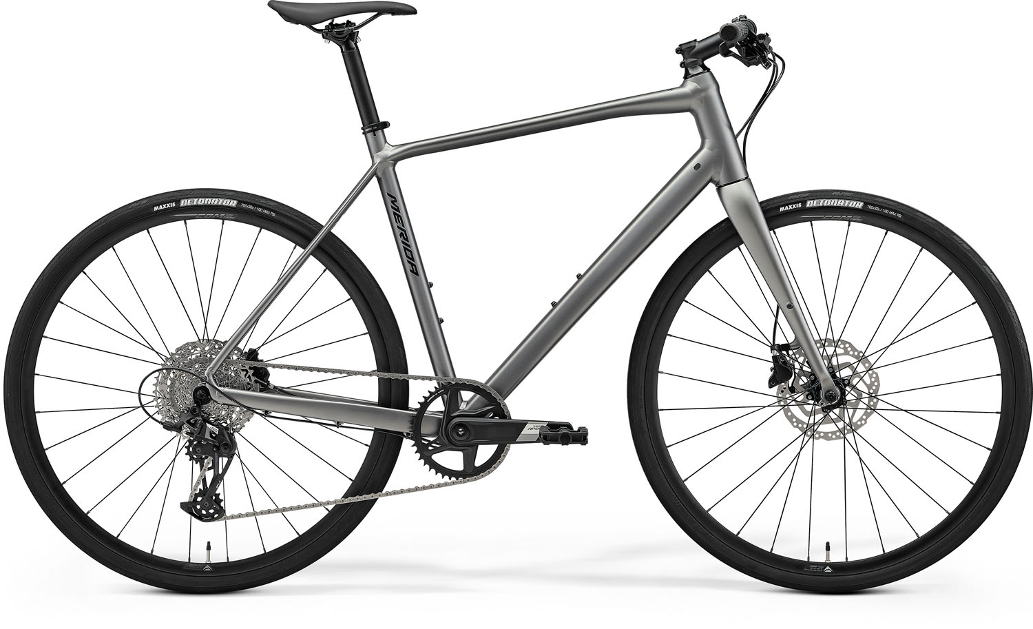 Merida Speeder 500 Fitness Kerékpár - Silk Gunmetal Grey(Black). Specifikáció: Váz: SPEEDER LITE III; MAT aluminium; 700x35C max. WHS; 100x9/135x9 AST; BSA BBR , Villa: MERIDA SPEEDER CF2; Tapered; MAT carbon ; 700x35C max. WHS , Első fék: Shimano MT200; 2 piston; hydraulic brake , Hátsó fék: Shimano MT200 / UR300 ; 2 piston , Lánc: Sram Apex Hajtómű: Sram Apex 1 Wide; 42 ATC Középcsapágy: Sram DUB BSA Road Wide Első váltó: Hátsó váltó: Sram Apex XPLR Fogaskoszorú: Sram PG1231 XPLR; 11-44 ATC; 12 GER Markolat: MERIDA Expert EC Kormány: MERIDA EXPERT CC; MAT aluminium; 600 WHB; Flat Kormánynyak: MERIDA EXPERT CC; MAT aluminium; 31.8 DSH; 7 ASD Kormánycsapágy: MERIDA M2331 Neck Első agy: Joytech D471SBT-SC-CL; 100x9 WHF; 28 SPH; centerlock Hátsó agy: Joytech D472TSBT-SC-CL; 135x9 WHR; 28 SPH; centerlock Felni: MERIDA COMP SL; 17 IWR; 22 HRI; MAT aluminium; Tubeless ready (tubeless tape and valves not included) , Nyereg: MERIDA COMP SL; 25% recycled material; V-mount , Nyeregcső: MERIDA COMP CC; 30.9 DSP; 5 SSB; MAT aluminium , Váltókar: Sram SX Eagle , Külsőgumi: Maxxis Detonator; 700x32C; fold