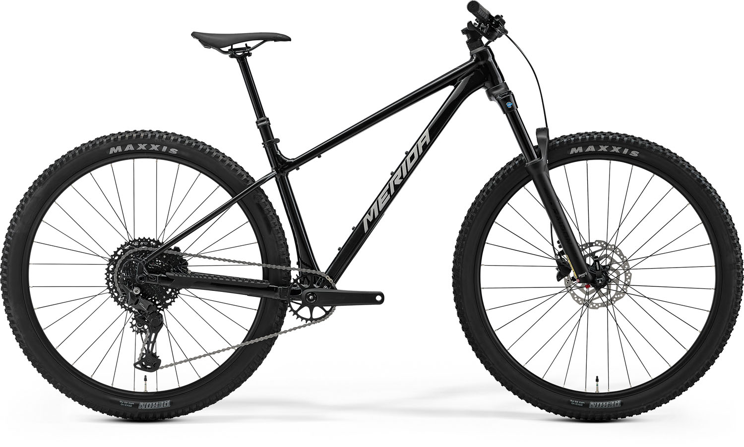 Merida Big Nine TR 600 29" MTB Kerékpár - Metallic Black(Silver). Specifikáció: Váz: BIG.NINE TR LITE III; MAT aluminium; 29x2.4" max. WHS; 148x12 AST; BSA BBR, Rugóstag: , Teleszkóp: SR Suntour Raidon 34 2CR; Air; 120 STR; Tapered; platform; 46 mm fork offset Fék: Shimano MT200; 2 piston , Lánc: KMC xGlide, Hajtómű: MERIDA Expert TR II; 32 ATC , Középcsapágy: Samox BSA 24mm EB2401 , Első váltó: , Hátsó váltó: Shimano CUES U6000; GS, Fogaskoszorú: SunRace 10-50t CS-UX400 EA5; 10-50 ATC; 11 GER; Linkglide , Markolat:MERIDA COMP TR , Kormány: MERIDA EXPERT CC; MAT aluminium; 760 WHB; 10 RHB Kormánynyak: MERIDA TEAM CC III; MAT aluminium; 31.8 DSH; -6 ASD , Kormánycsapágy: Acros ICR MERIDA EXTERNAL neck; Upper and lower IPS sealing , Első agy: Shimano TC500-B; 110x15 WHF; 32 SPH; Centerlock , Hátsó agy: Shimano TC500-HM-B; 148x12 WHR; 32 SPH; Centerlock , Felni: MERIDA COMP CC II; 25 IWR; MAT aluminium; tubeless ready, Nyereg: MERIDA COMP SL; 25% recycled material; V-mount, Nyeregcső: MERIDA COMP TR; 30.9 DSP; 0 SSB; S: 125 SPT - M/L: 150 SPT - XL/XXL 175 SPT , Váltókar: Shimano CUES U6000 , Első külsőgumi: Maxxis Rekon; 29x2.4"; wire , Hátsó külsőgumi: Maxxis Rekon; 29x2.4"; wire