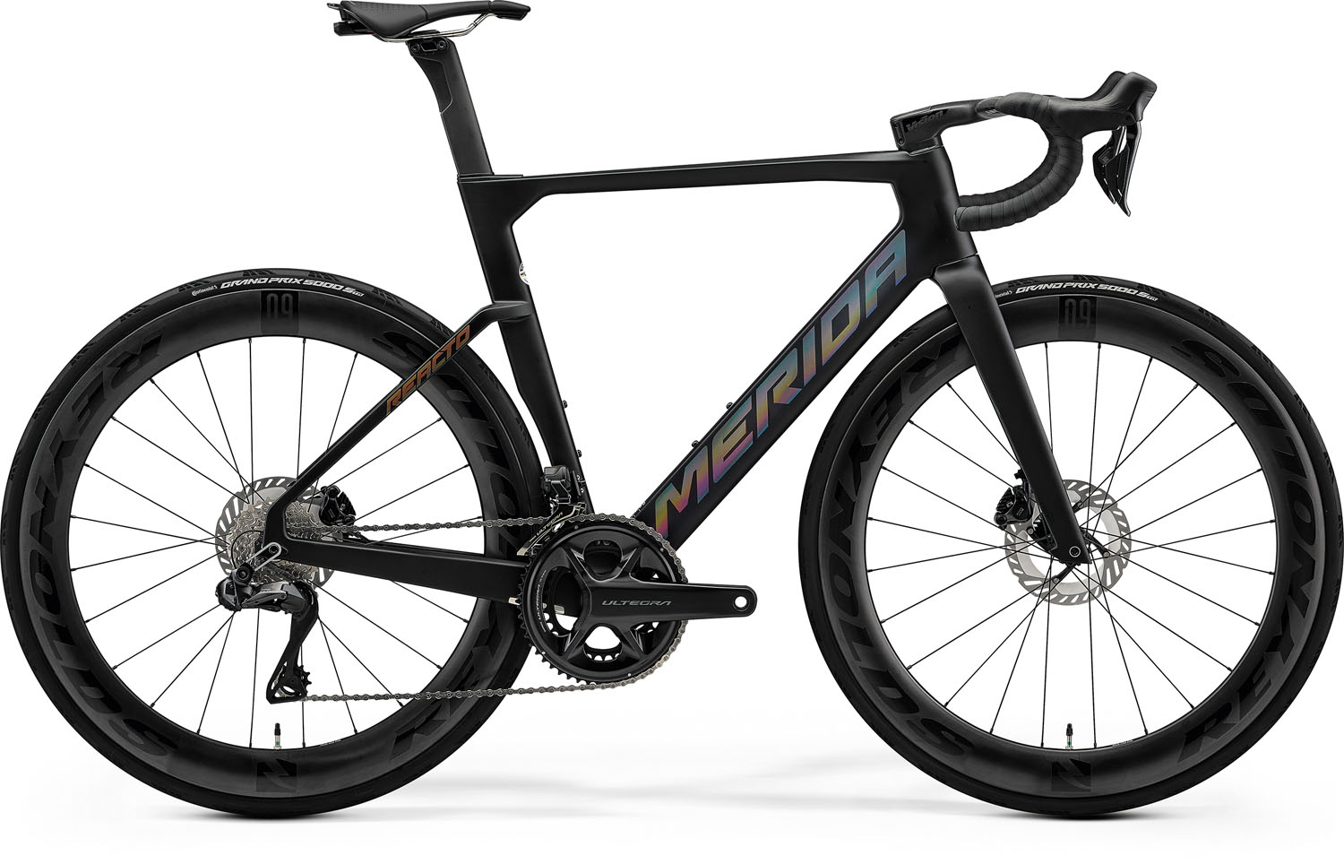 Merida Reacto 8000 Carbon Országúti Kerékpár - Silk Black(Glossy Dark Silver). Specifikáció: Váz: REACTO CF3 IV; MAT carbon; 700x30C max. WHS; 100x12/ 142x12 AST; BB86,5 BBR , Villa: REACTO CF3 IV DISC; MAT carbon; 700x30C max. WHS , Első fék: Shimano Ultegra; Hydraulic disc , Hátsó fék: Shimano Ultegra; Hydraulic disc , Lánc: Shimano M6100-12 Hajtómű: Shimano Ultegra; 52-36 ATC Középcsapágy: Shimano SM-BB72-41B; Pressfit 86.5 Első váltó: Shimano Ultegra Di2 Hátsó váltó: Shimano Ultegra Di2 Fogaskoszorú: Shimano Ultegra R8101; 11-30 ATC; 12 GER Markolat: MERIDA ROAD Expert Kormány: Vision Metron 5D ACR EVO; MAT carbon; 380mm (3S-XXS-XS-S); 400mm (M-L); 420mm (XL) Kormánynyak: Vision Metron 5D ACR EVO; MAT carbon Kormánycsapágy: FSA ACR 3MM THINNER NECK Első agy: Hátsó agy: Felni: Reynolds AR 60 DB, 100x12 WHF; 142x12 WHR; 21 IWR; 60 HRI; Centerlock , Nyereg: Prologo Scratch M5; V-mount adapter; incl. MERIDA minitool , Nyeregcső: MERIDA Team CW; Aero shape; 15 SSB; Carbon , Váltókar: Shimano Ultegra disc Di2 , Külsőgumi: Continental Grand Prix 5000S TR; 700x28C; fold; tubeless ready