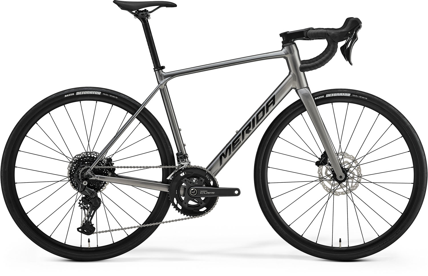 Merida Scultura Endurance 300 Országúti Kerékpár - Gunmetal Grey(Black). Specifikáció: Váz: SCULTURA ENDURANCE LITE; MAT aluminium; 700x35C max./ 700x32C (with fender) max. WHS; 100x12/ 142x12 AST; BB86 BBR , Villa: SCULTURA ENDURANCE CF3 DISC; MAT carbon; 700x35C max. WHS , Első fék: Shimano CUES; Hydraulic disc , Hátsó fék: Shimano CUES; Hydraulic disc , Lánc: KMC X10 Hajtómű: Shimano CUES; 50-34 ATC Középcsapágy: Shimano SM-BB71-41B; Pressfit 86.5 Első váltó: Shimano CUES Hátsó váltó: Shimano CUES ; RD-U6000GS Fogaskoszorú: Shimano LG300-10; 11-39 ATC; 10 GER Markolat: MERIDA ROAD Expert Kormány: MERIDA EXPERT SLII; MAT aluminium; 380mm (4S-3S-XXS-XS-S), 400mm (M-L), 420mm (XL) Kormánynyak: MERIDA TEAM CC III; MAT aluminium; 31.8 DSH; -6 ASD Kormánycsapágy: Acros ICR MERIDA EXTERNAL neck w/diecast splitring Első agy: Joytech D981SB; 100x12 WHF; 28 SPH; Centerlock Hátsó agy: Joytech D872SB; 12-142 WHR; 28 SPH; Centerlock Felni: MERIDA COMP SL II; 23 IWR; 24 HRI; MAT aluminium; Tubeless ready (tubeless tape and valves not included) , Nyereg: MERIDA COMP SL; 25% recycled material; V-mount , Nyeregcső: MERIDA COMP CC; 27.2 DSP; 0 SSB; MAT aluminium , Váltókar: Shimano CUES disc , Külsőgumi: Maxxis Detonator; 700x32C; fold