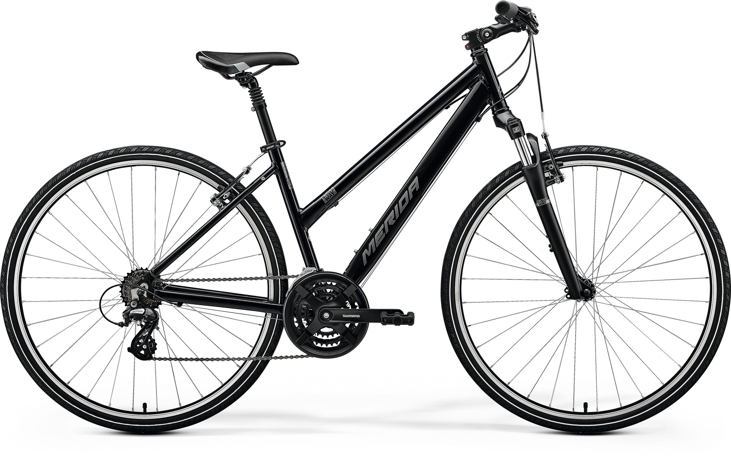 Nem kell egy vagyont költened ahhoz, hogy megbízható, könnyű alumínium hibrid bringád legyen, amely tökéletes a mindennapi használathoz, hétvégi kirándulásokhoz és kényelmes tekeréshez. A CROSSWAY 10-V erős, könnyen karbantartható V-fékekkel van felszerelve, széles áttételtartományával pedig gyorsan célba érsz, és a meredek emelkedőkön is könnyedén feljutsz. A teleszkópos villa és a rugós nyeregcső extra kényelmet és biztonságot nyújt tekerés közben. A CROSSWAY család már a MERIDA kínálatának alapköve a bevezetése óta. Világszerte használják, és bizonyítottan megbízható, sokoldalú és szórakoztató módja a közlekedésnek. Úgy terveztük, hogy kényelmes testtartást biztosítson, így könnyen élvezheted a környezetet. Az egyenes üléspozíció és a kényelmet szolgáló felszerelések, például a teleszkópos villa és az állítható kormányadapter (bizonyos modelleknél), tökéletes egyensúlyt teremtenek a kényelem, az élvezet és a sokoldalúság között. Ideális fitnesz edzéshez, ingázáshoz, vagy erdei és túraútvonalakon tett laza tekerésekhez. A CROSSWAY modellek kiváló minőségű, könnyű alumíniumból készülnek, és alkalmasak sárvédők, csomagtartók és kitámasztók felszerelésére is. Ezért tökéletes választást jelentenek a mindennapi használatra. A 700c méretű kerekek gyors haladást biztosítanak, míg a 40 mm széles gumik extra defektvédelmet, tapadást és kényelmet nyújtanak. Minden CROSSWAY modell elérhető alacsony átlépési magasságú vázzal is, hogy a fel- és leszállás a lehető legegyszerűbb legyen.