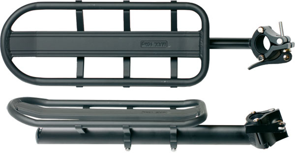 Nyeregcsőre rögzíthető, erős felépítésű aluminium csomagtartó, 10 kg teherbrással.
