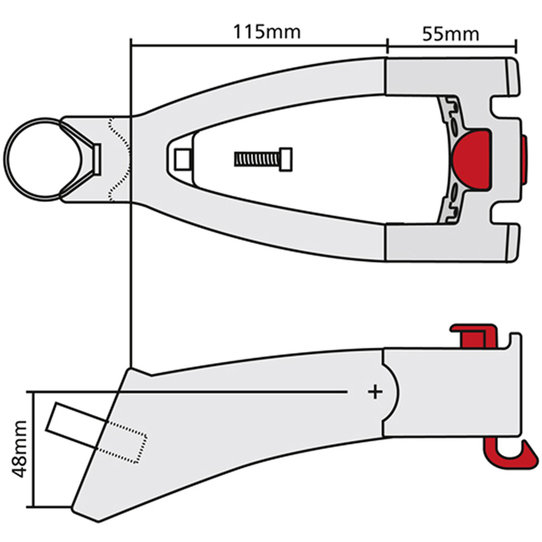 A Klickfix Extender lehetővé teszi, hogy az összes Klickfix kormánytartozékot az üléscsövön is használja. Táskákhoz, hátizsákokhoz és kosarakhoz használható. Egyszerű rögzítés rozsdamentes pánttal Ø 25-32 mm-ig. Kormány adapter fej tartozik hozzá. Ideális csomagtartó nélküli kerékpárokhoz, így nagyobb táskákra, hátizsákokra vagy kosarakra is kattinthat (a kerékpáron lévő helytől függően). Nem javasoljuk használatát carbon nyeregcsövekhez. Max 5kg terhelhetőség.