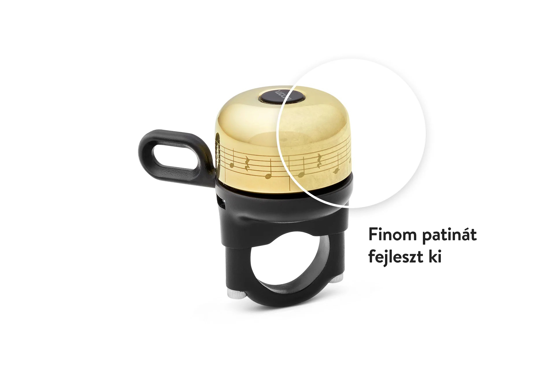 Kicsi, de mégis hangos. A csengő a kéz kormányról való levétele nélkül kezelhető, könnyű, és biztonságosan elérhető a hüvelykujjal. Egy kiváló minőségű rézfúvós hangszerhez hasonlóan rézből készült rezonátor teste akár hat másodpercig is tartó lecsengést biztosít, amelyet még a városi forgalomban is meghallanak a közlekedők. Anyagából kifolyóan a csengő felszínén egy idő után patina fog képződni.