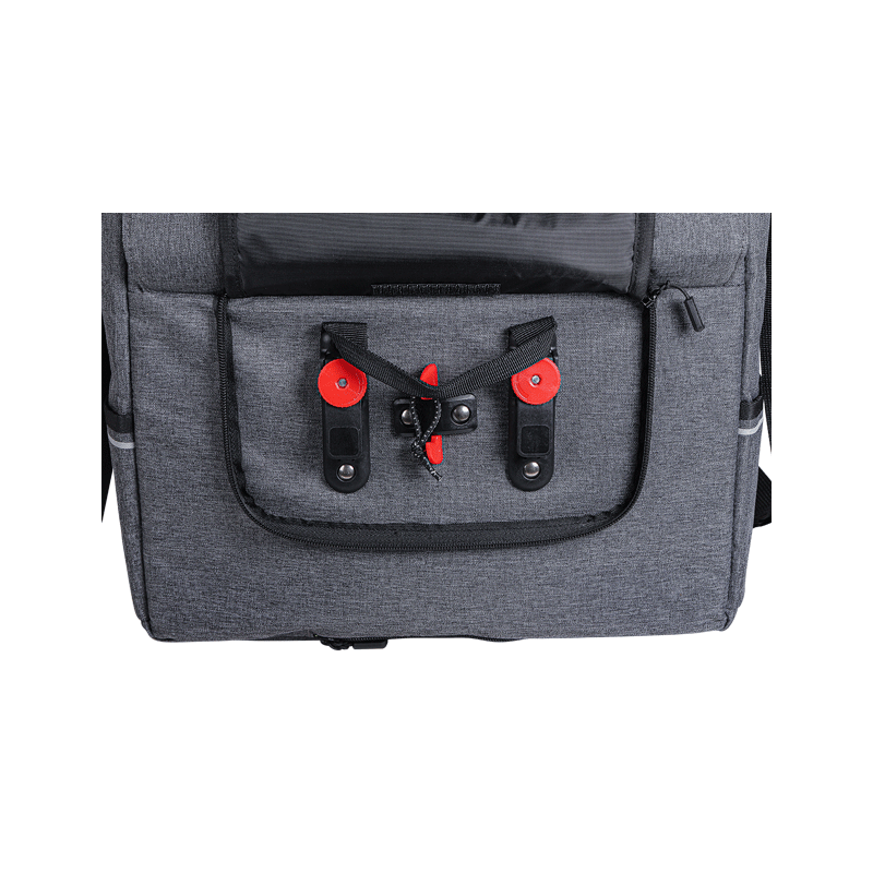 Zefal Urban Messenger Túratáska / Futártáska Csomagtartóra is rögzíthető kerékpáros válltáska A Zéfal Urban Messenger táska egy 11 literes válltáska, ideális napi kerékpáros kirándulásokhoz. Stílusos, strapabíró és praktikus, ez a táska, amely lehetővé teszi a laptop (15 hüvelykes) és a holmija tárolását, kerékpáron és azon kívül is. Könnyű és univerzális rögzítési rendszerrel rendelkezik, amely a hátsó csomagtartóra szerelhető és hordozható. A cipzáras zárás és a mágneses pattintók gyors hozzáférést tesznek lehetővé a fő rekeszhez (kérjük, vegye figyelembe, hogy a bőrpántok csak dekoratívak, a pattintók pedig a pántok alatt találhatók). Egy külső elülső zseb és egy másik belső zseb lehetővé teszi az apró tárgyak tárolását. A táska belsejében egy pánt található, amely egy vizes palack tárolására szolgál. A táska mindkét oldalán zsebek találhatók, amelyek rögzítik a vállpántot, amikor a táskát a hátsó csomagtartóra szerelik. A táska alatt egy elasztikus esővédő található, amely letekerhető és védi a táskát eső esetén. Méret 35 x 30 x 13 cm, súly 840g, űrtartalom 11 liter, anyaga RPET.