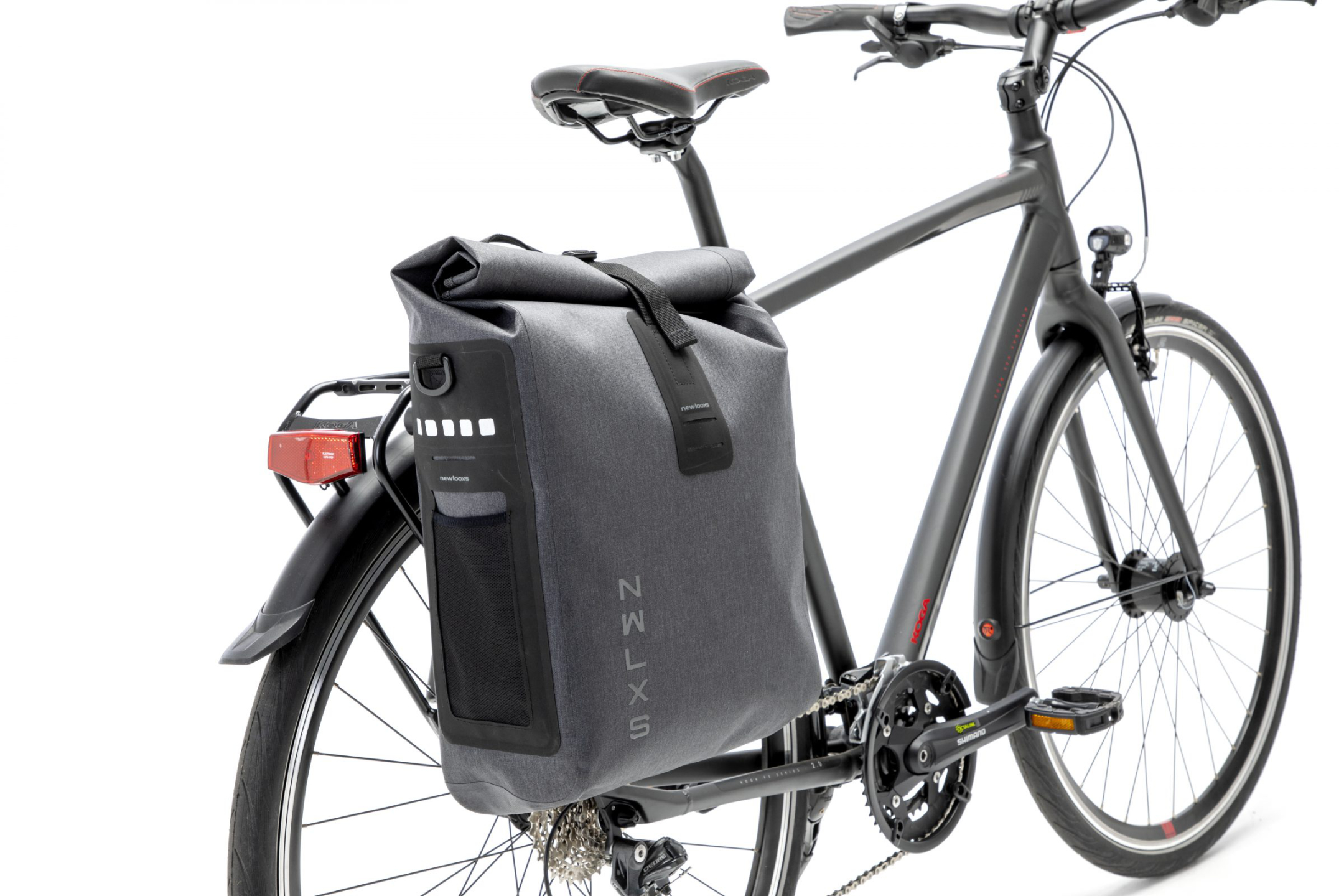 NewLooxs Varo Single Kerékpáros Táska A Varo Single 100%-ban vízálló nylonból készült, tekercszárással zárható. A táska állítható kampókkal rögzíthető a csomagtartóra és levehető vállpánttal rendelkezik. Fő rekesze mellett 3 extra kisebb rekesze van, valamint fenyvisszaverős elemek is találhatók rajta mindkét oldalon. Súly: 0,77 kg. Űrtartalom: 20 liter. Mérete: 28 x 43 x 17 cm.