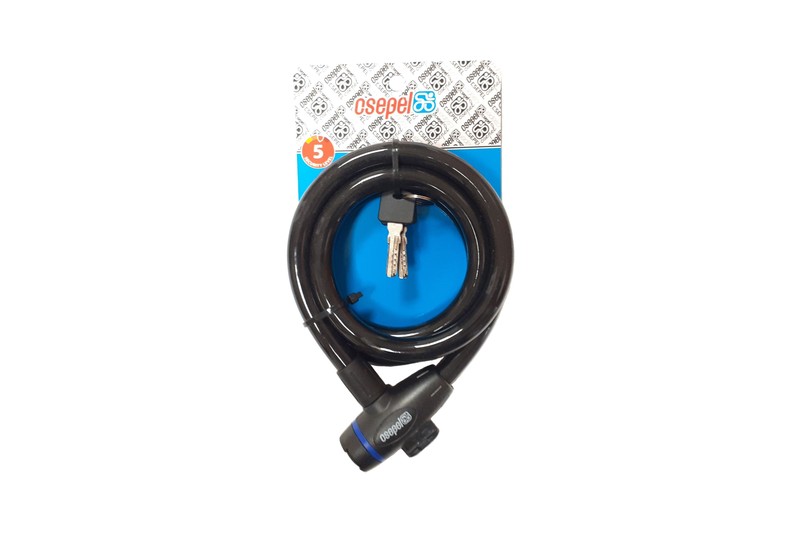 Csepel Kulcsos Spirálzár Csepel kábelzár, acélsodrony, kulcsos zárszerkezet, átmérő: 15 mm, hossz: 1500 mm.