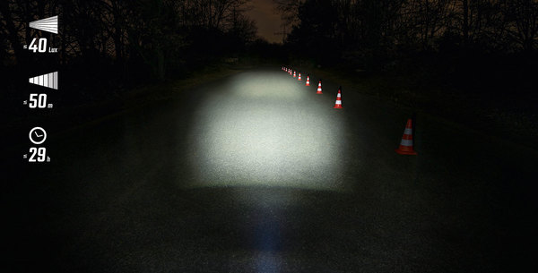 Eco (takarékos fény): fényerő ≤ 15 lux, üzemidő ≤ 29 óra